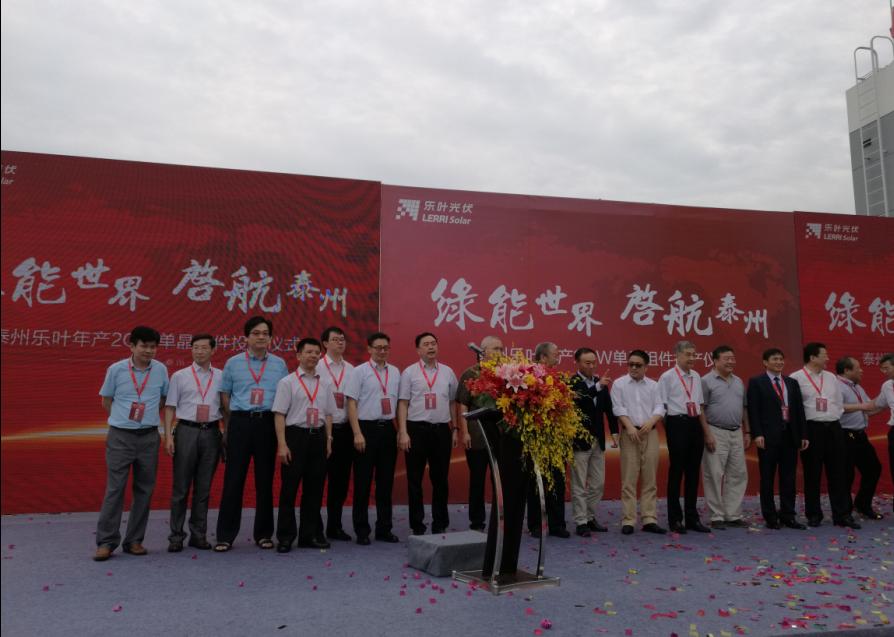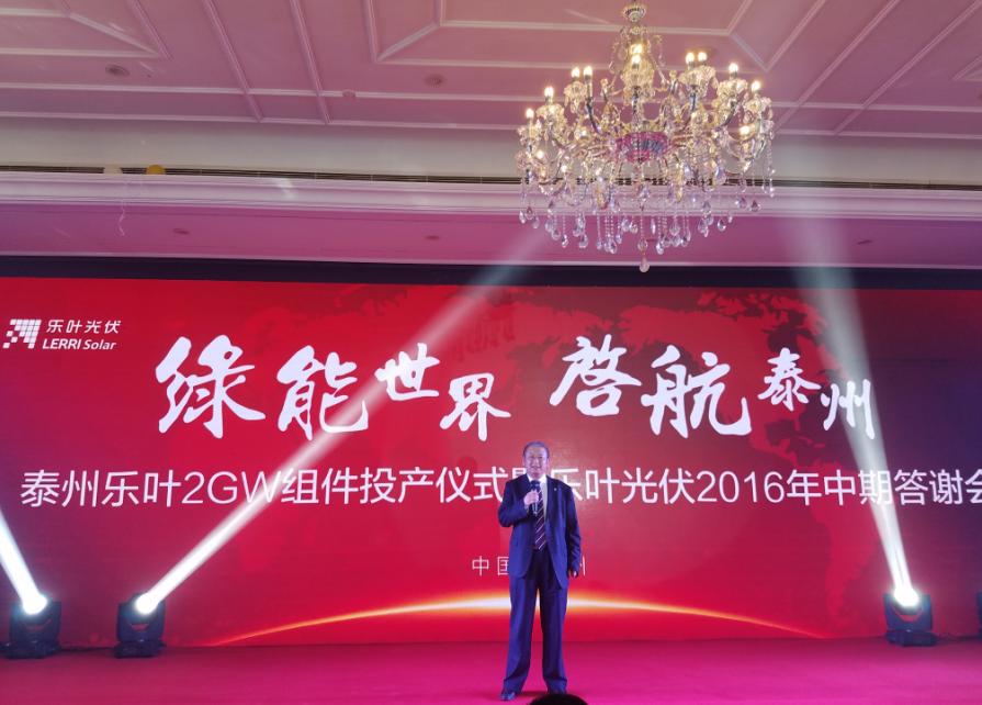 2016年9月6號(hào),細(xì)雨綿綿,彩旗飄展,江蘇泰州市海陵區(qū)隆基樂(lè)葉2GW太陽(yáng)能電池組件一體化項(xiàng)目舉行隆重的投產(chǎn)儀式。隆基股份董事長(zhǎng)鐘寶申發(fā)表主旨演講。國(guó)務(wù)院參事、中國(guó)可再生能源學(xué)會(huì)理事長(zhǎng)石定寰、國(guó)家發(fā)改委國(guó)際新能源研究所所長(zhǎng)王進(jìn)、招商新能源CEO李原、泰州市海陵區(qū)徐克儉書(shū)記等先后發(fā)表了熱情洋溢的講話。充分肯定了泰州樂(lè)葉建設(shè)的高速度、產(chǎn)能的高效化、盛贊隆基股份已成為國(guó)際單晶硅、硅片、電池、組件的最大供應(yīng)商之一。