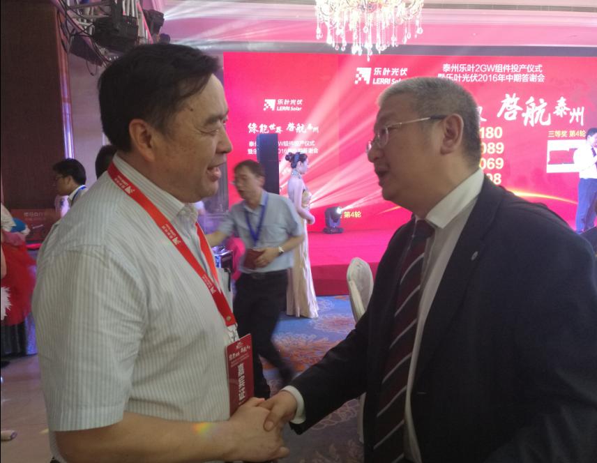 趙振元同志與樂(lè)葉光伏董事長(zhǎng)李文學(xué)在慶典午宴上親切交流